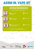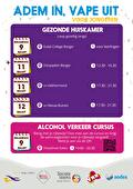 In de maand maart staat de campagne ‘Adem in, Vape uit’ centraal, waarbij we aandacht besteden aan roken en vapen onder jongeren en de effecten hiervan. Op verschillende plekken in de gemeente komen we langs met De Gezonde Huiskamer, waarbij we met de jongeren in gesprek gaan over roken, vapen en stress. Daarnaast kunnen de jongeren hier op een interactieve manier ervaren wat het oplevert om niet te roken of te vapen. Voor ouders van kinderen vanaf groep 7/8 organiseren wij informatiebijeenkomsten, waarbij we het gesprek aangaan over het puberbrein en de invloed van nicotine. Ouders krijgen handvatten mee , hoe zij hierover in gesprek kunnen gaan met hun kind.